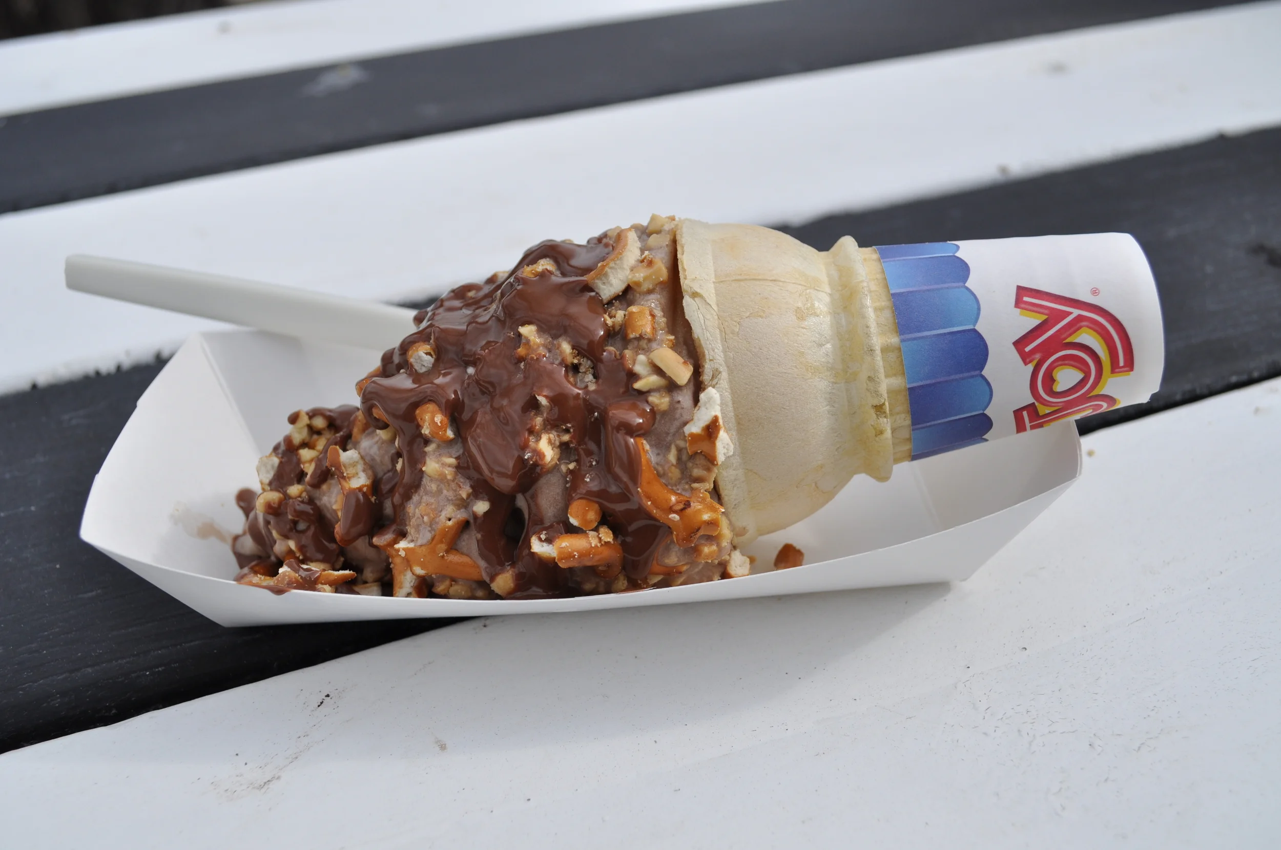 Our cones were so loaded down, they were served in a dish with a spoon and a plethora of napkins. They should also consider serving up these cones with a "good luck" as well. It takes a lot to do some serious damage to these cones!