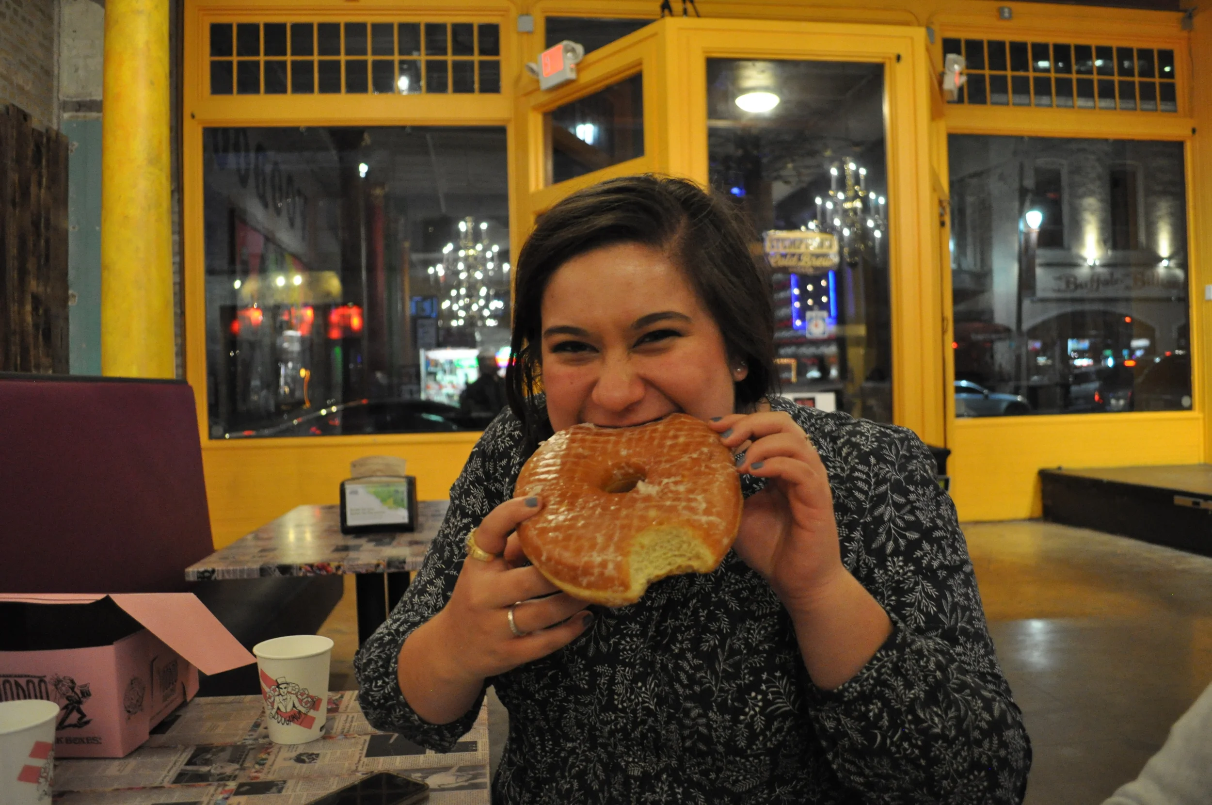 The VooDoo donut. I ate the arm and that was it. PS: It is filled with strawberry jam/blood