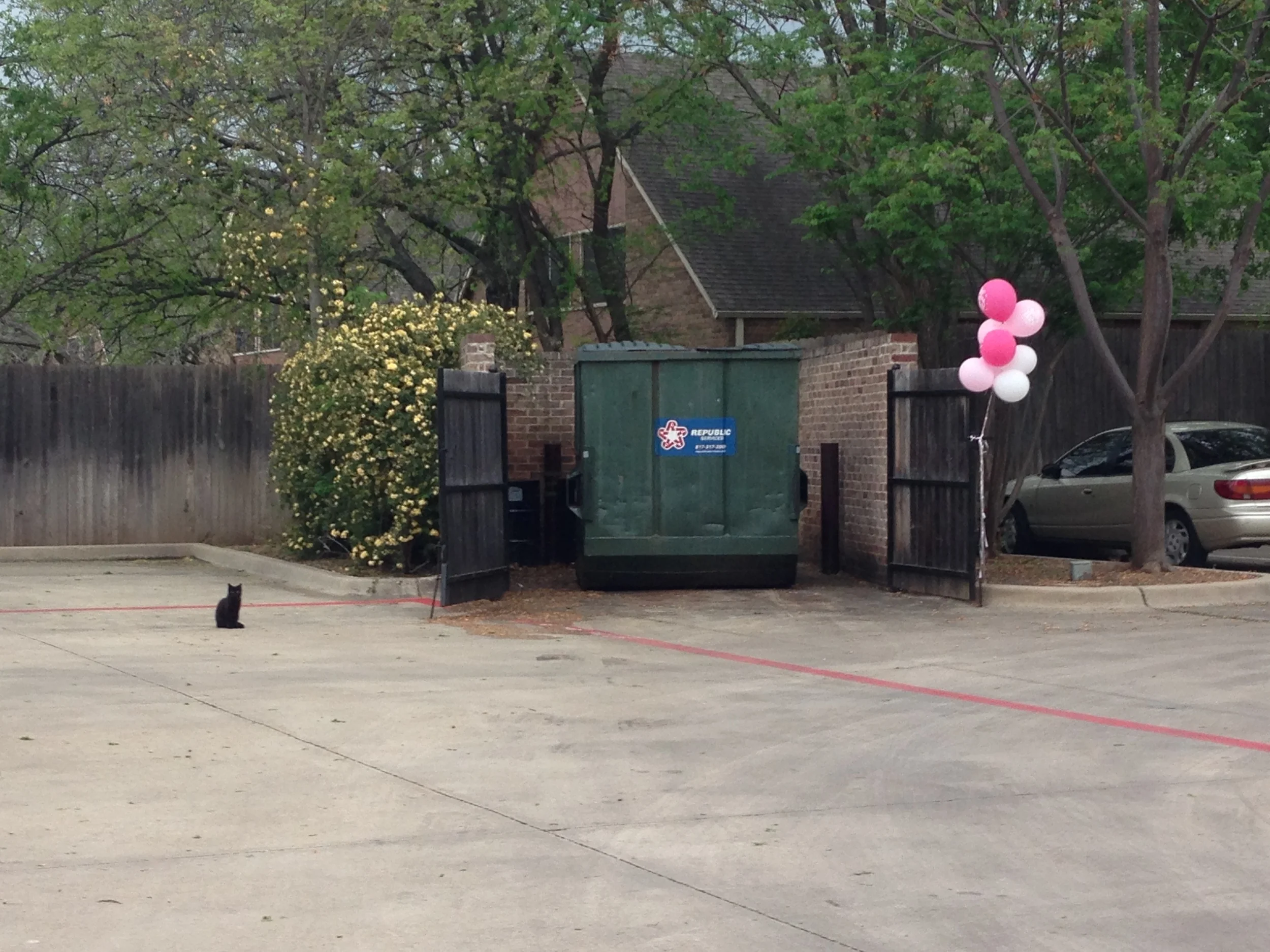I loved how this cat balanced the balloons on the other side of the dumpster. I think this photo is beautiful.