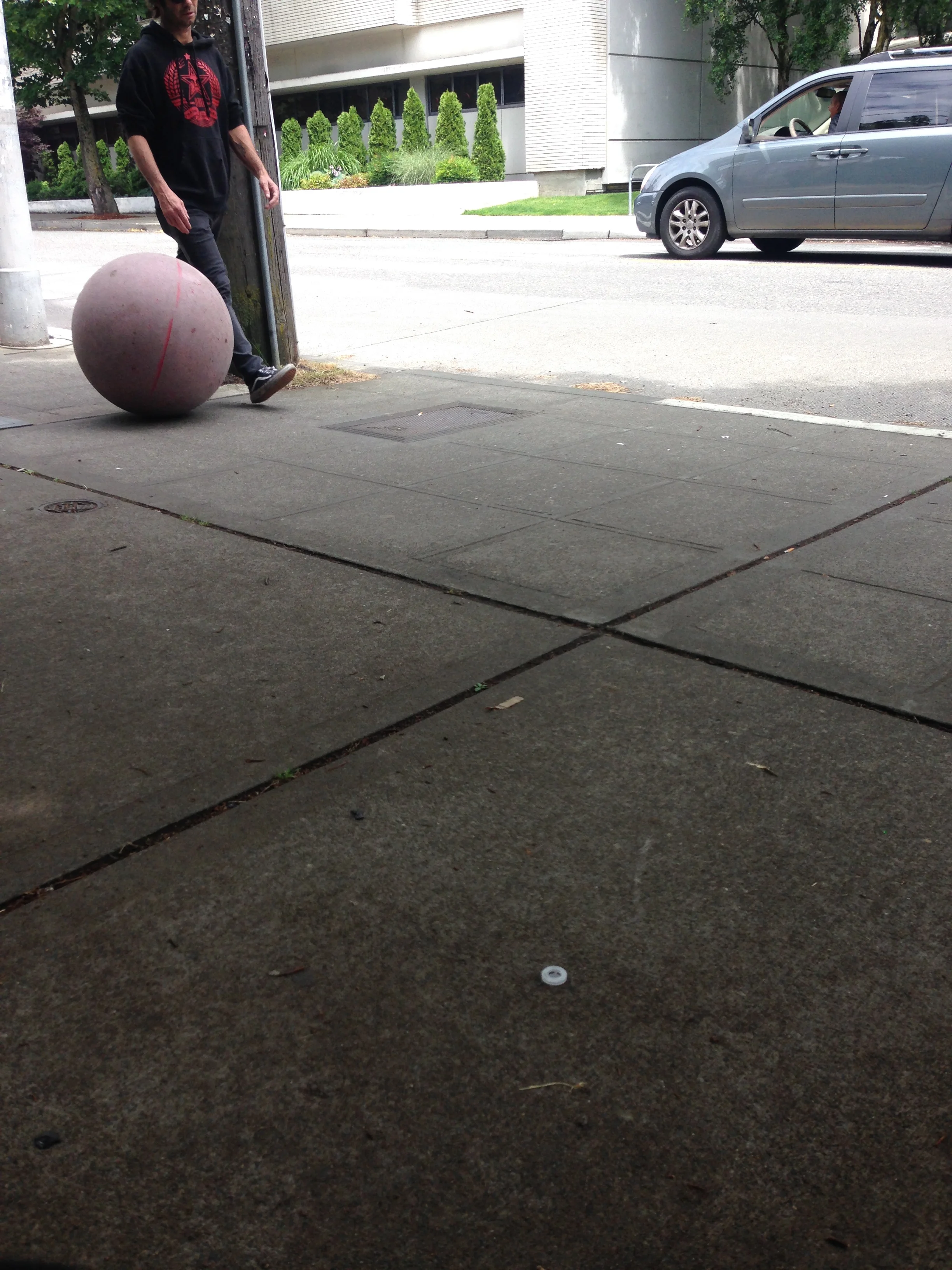 Casually walking a ball like someone would walk a dog