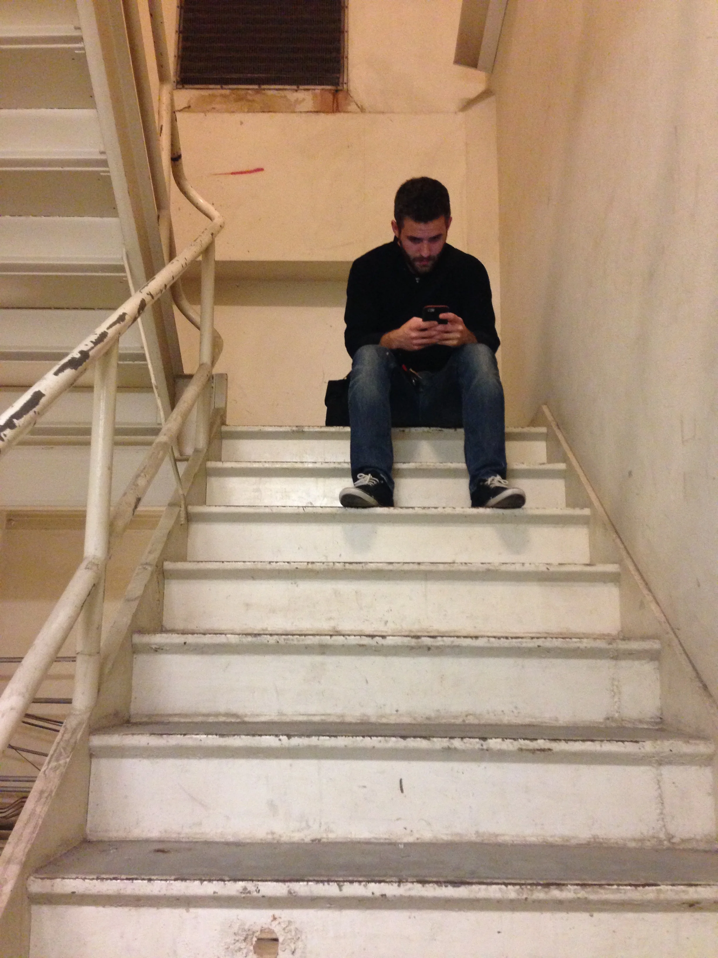 But, this time, there was an unmarked door halfway up to where the stairs ended. Justin tried the handle to the unmarked space and success!