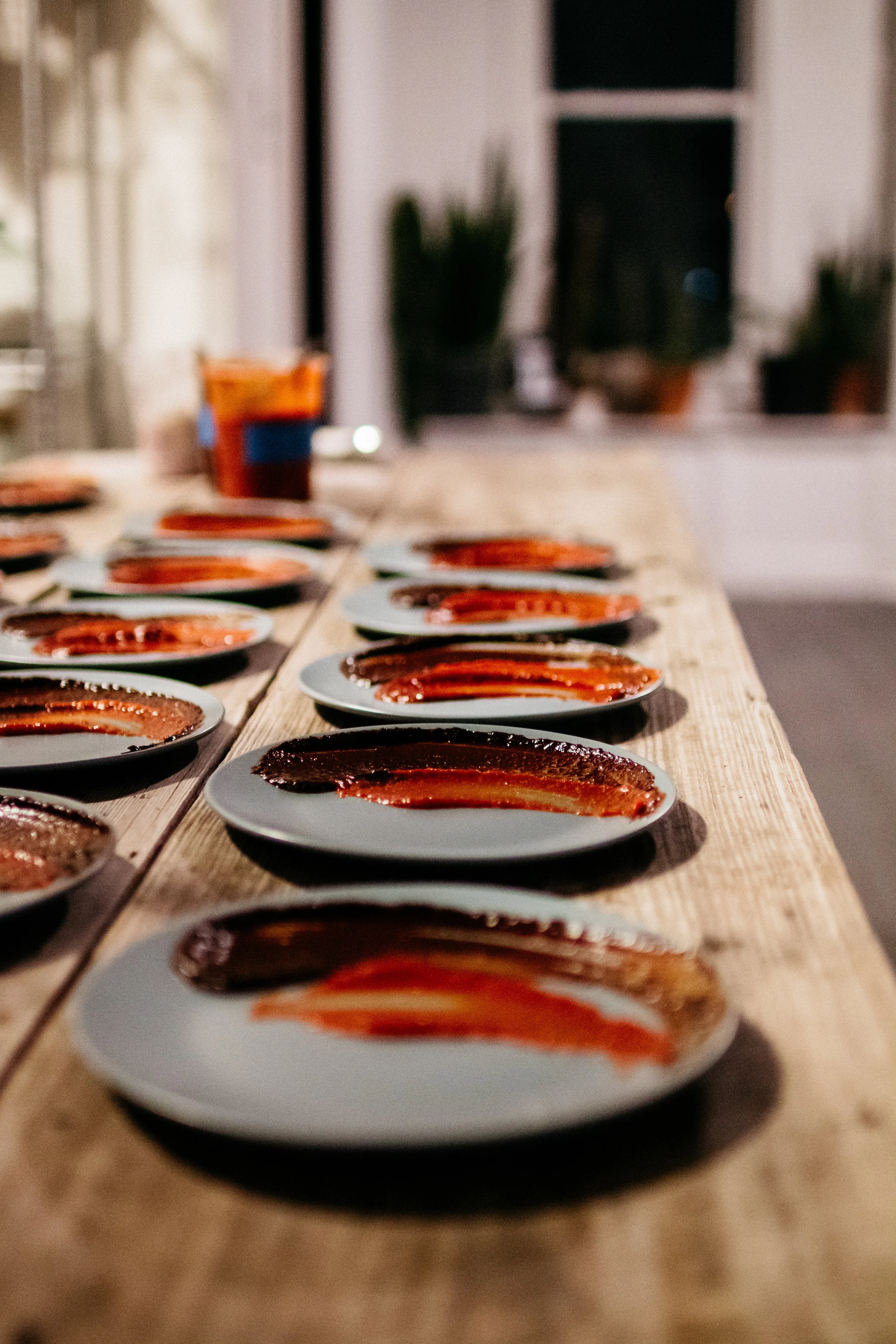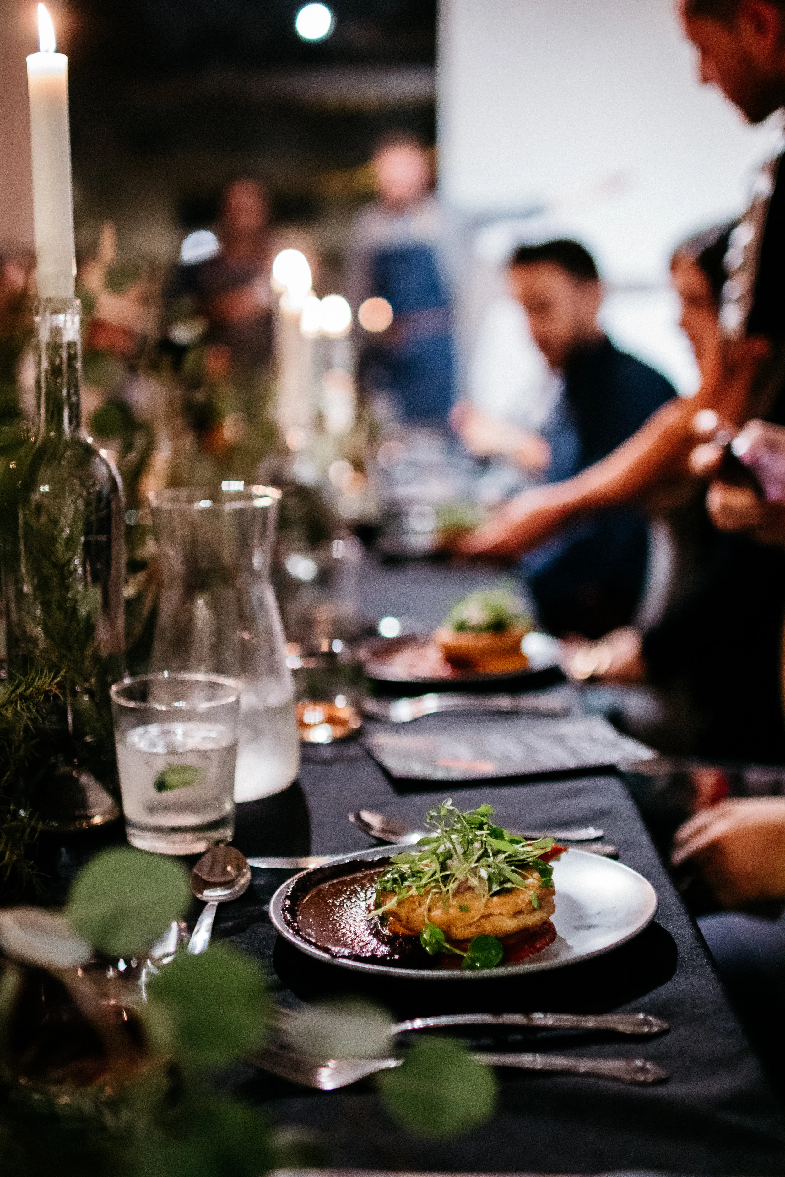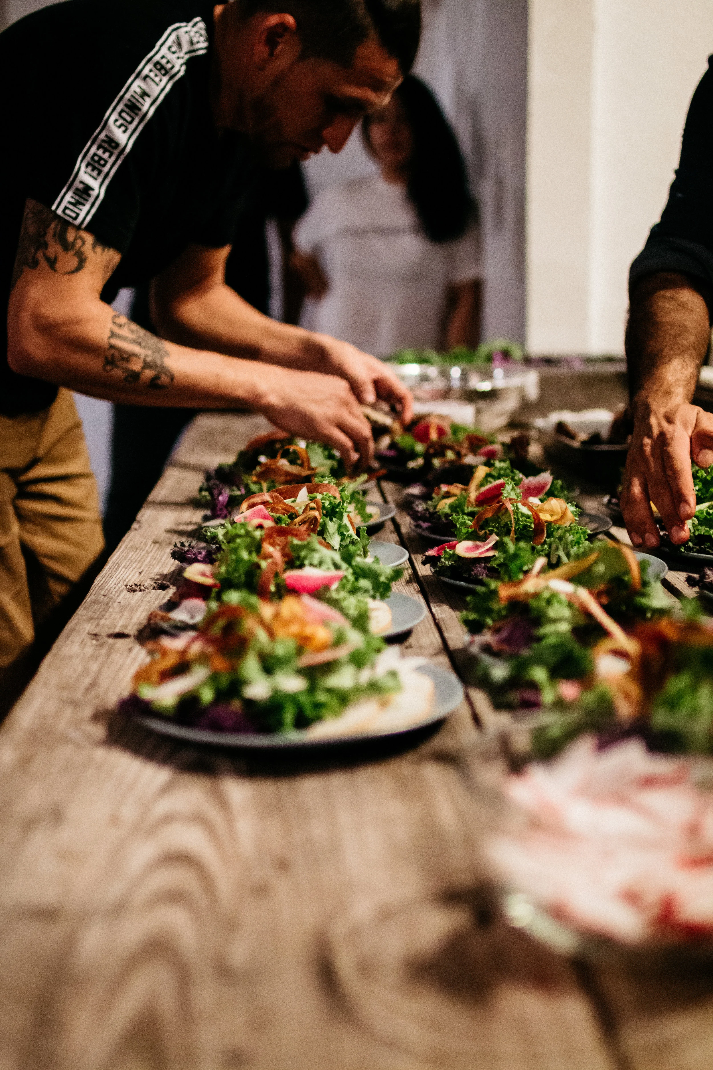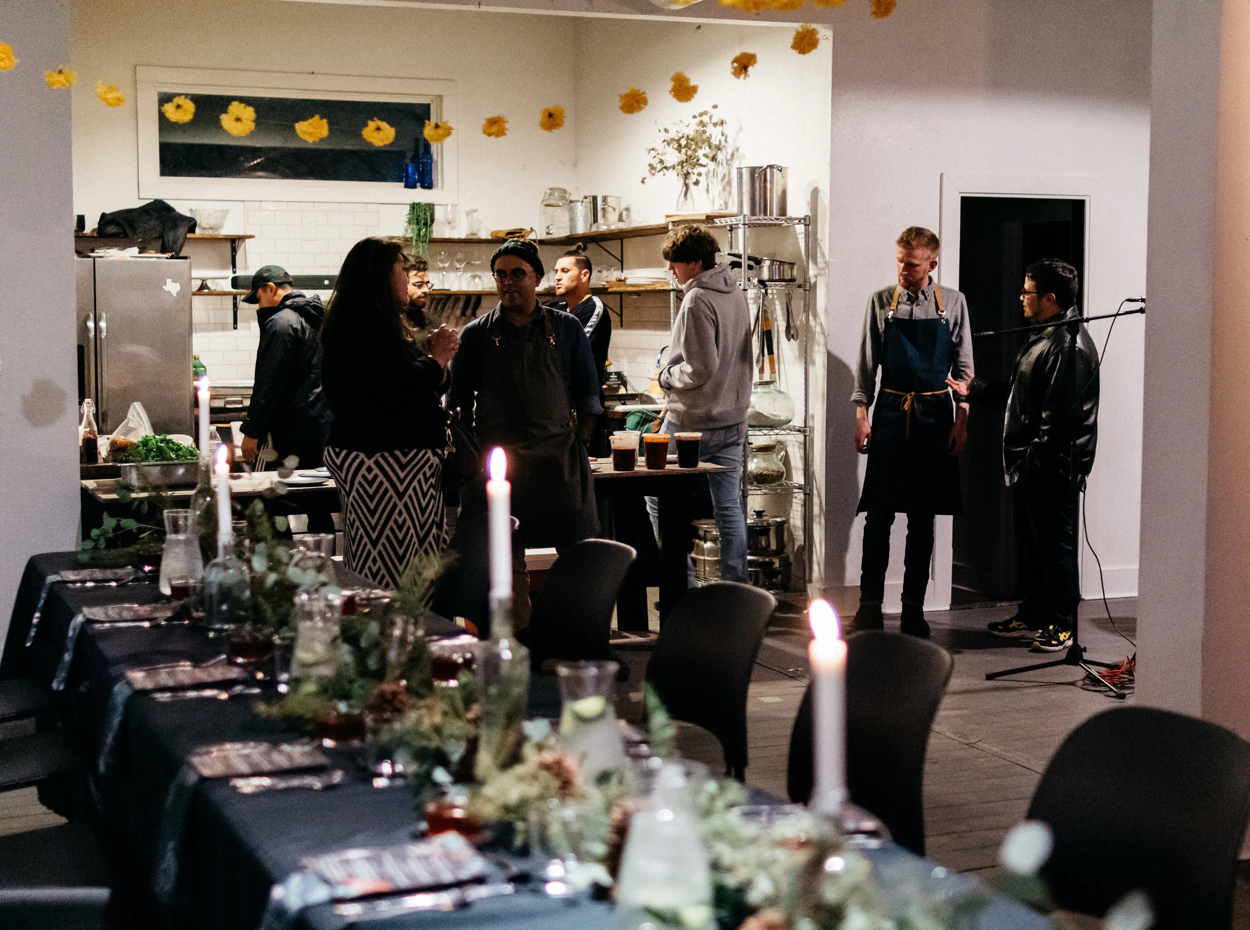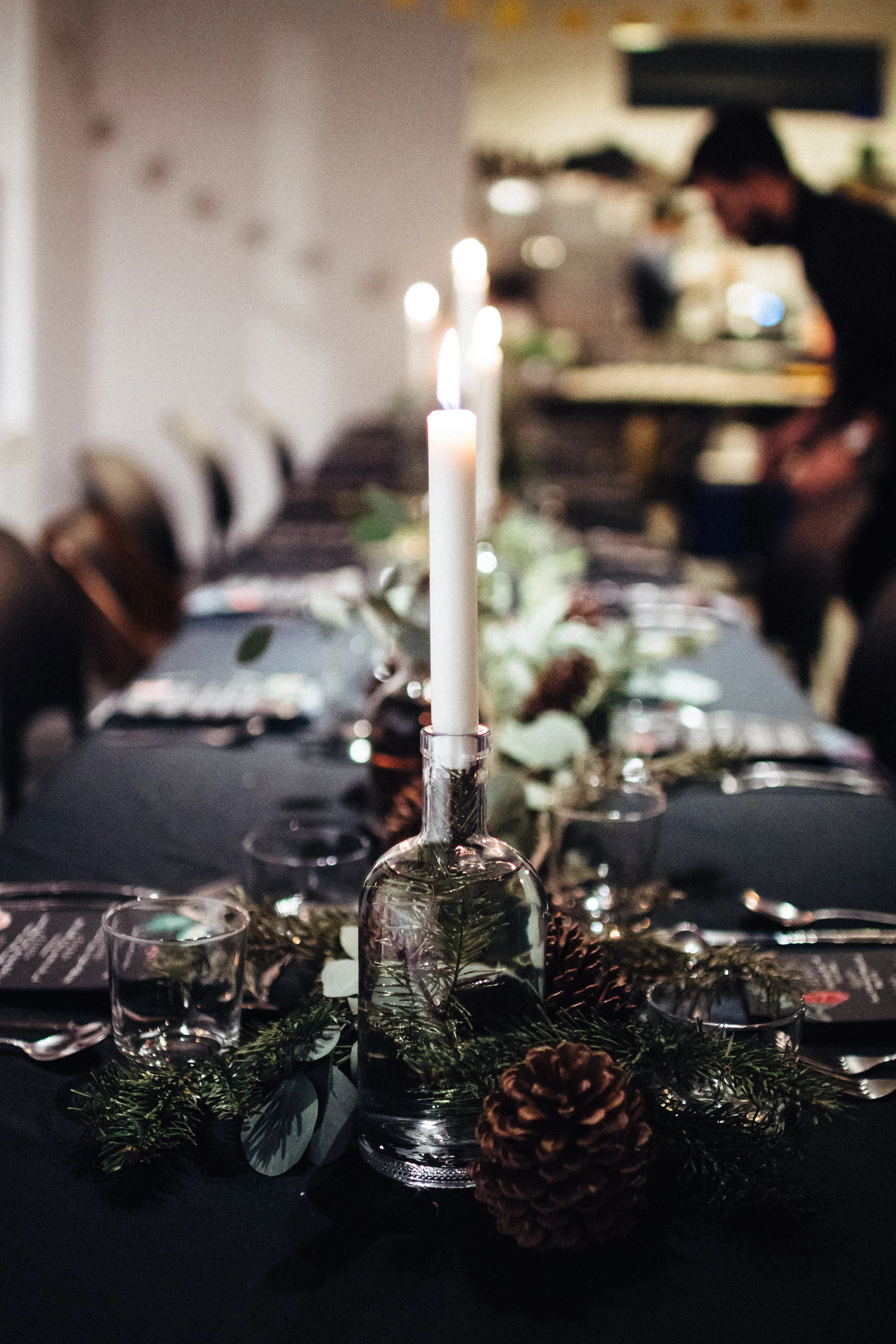 The design was based around the Spanish menu and the idea of having a christmasy feel to the event - without being too in-your-face-commercialized christmas. We landed on the muted tones of red, gold, tan, wine and a tones of green to be dusted in the pinata-inspired wall art, a slight nod to Ofrendas with the marigolds dangling from the ceilings, and hand painted menus to match the napkins - each featuring a totally different and unique design! Styling this dinner was one of my favorite projects to date!